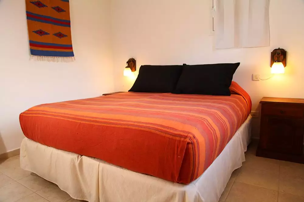 Cabaña dos ambientes, para 4 pax, version duplex, con un gran dormitorio con sommier de primera calidad , placard, vistas al jardin, baño compartimentado, en planta baja dos camas en el living con TV cocina comedor totalmente equipada, ventiladores de techo en los distintos ambientes, muy luminosos, deck-terraza con vista al jardin o al medano con parrilla y muebles de exteriror privados